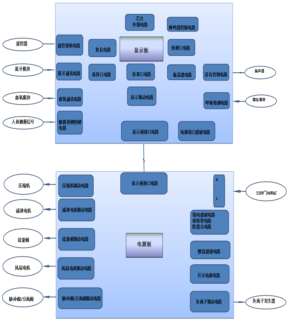3)可支持遙控接收,藍(lán)牙通訊、血氧模組、電磁閥、風(fēng)機(jī)、加濕等部件的選配需求;